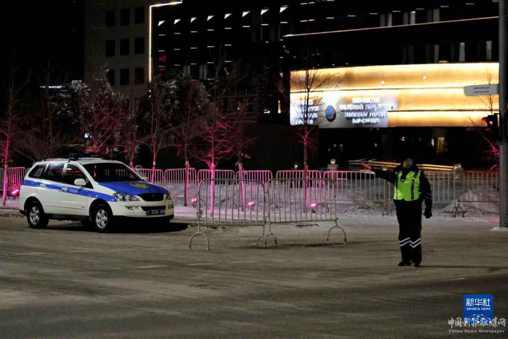 1月5日,警察在哈薩克斯坦首都努爾蘇丹的市政府前執(zhí)勤。