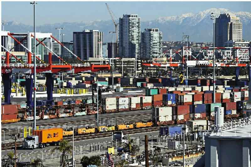 圖:加州長灘港11日積壓大批貨柜。\法新社