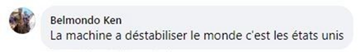 喀麥隆網(wǎng)友貝爾蒙多·肯留言說,美國就像一部攪亂世界的機(jī)器,危害世界和平。