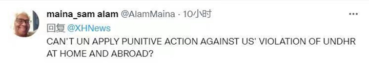 美國網(wǎng)友馬伊納呼吁聯(lián)合國對美國違反《世界人權(quán)宣言》的行徑作出懲罰。