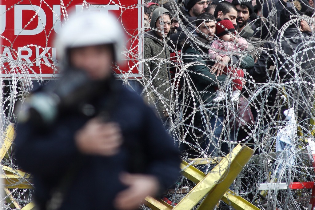 2020年3月2日,在希臘東北部奧雷斯蒂亞達(dá)地區(qū)的卡斯塔尼斯邊境口岸附近,大批難民和非法移民聚集在土耳其一側(cè)。新華社發(fā)(迪米特斯·托斯迪斯攝)