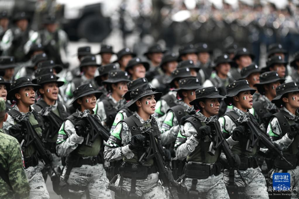 9月16日,在墨西哥首都墨西哥城,墨西哥國民警衛(wèi)隊(duì)參加閱兵式。