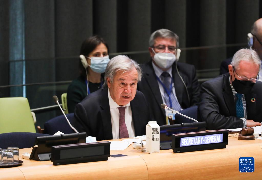 9月26日,在位于紐約的聯(lián)合國總部,聯(lián)合國秘書長古特雷斯(前左)在紀(jì)念“徹底消除核武器國際日”高級別會議上致辭。新華社記者王迎攝