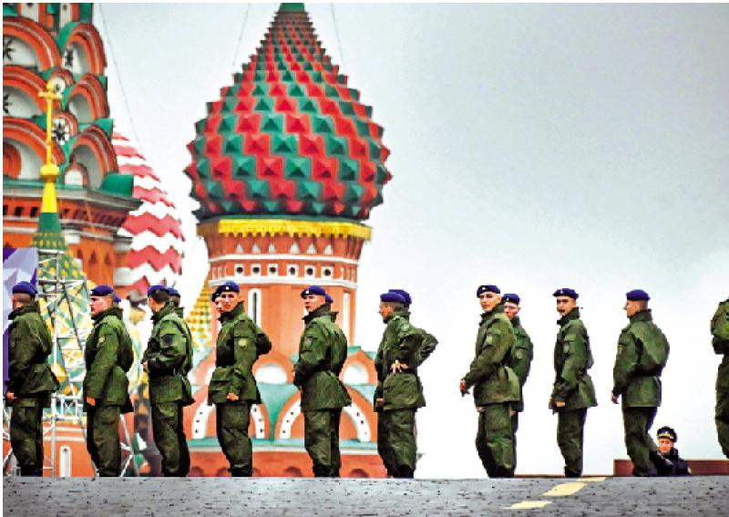 圖:俄羅斯士兵29日在紅場集合,為30日的儀式做準備。\法新社