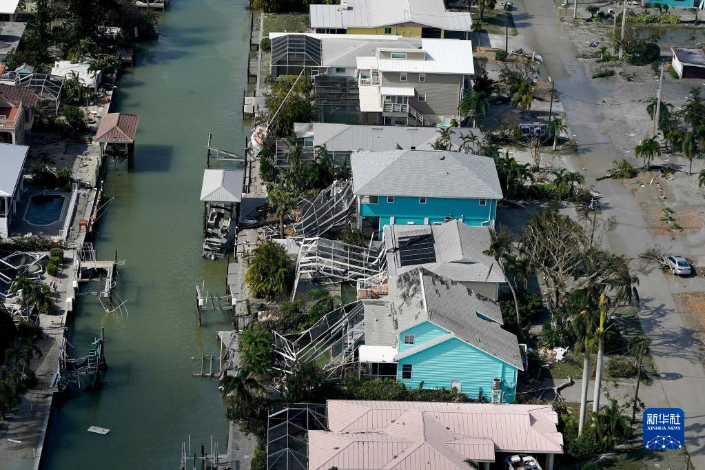 9月30日,在美國佛羅里達州西南沿海的邁爾斯堡,颶風“伊恩”給當?shù)胤课?、道路等設(shè)施帶來不同程度破壞。新華社發(fā)(羅蘭多·洛佩斯攝)