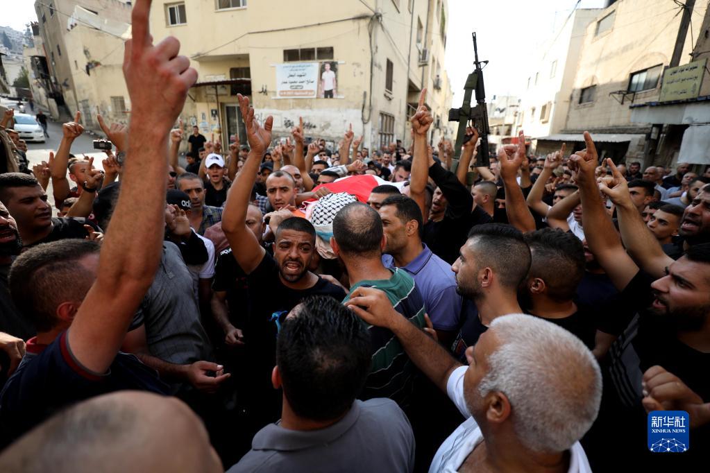 10月14日,在約旦河西岸北部城市杰寧,人們?yōu)楸灰陨熊婈牬蛩赖陌屠账固谷怂驮帷?/p>