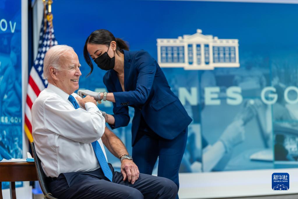 美國總統(tǒng)拜登25日接種針對新冠病毒奧密克戎變異株的疫苗加強針,并警告美國進入冬天后疫情或?qū)夯?/p>