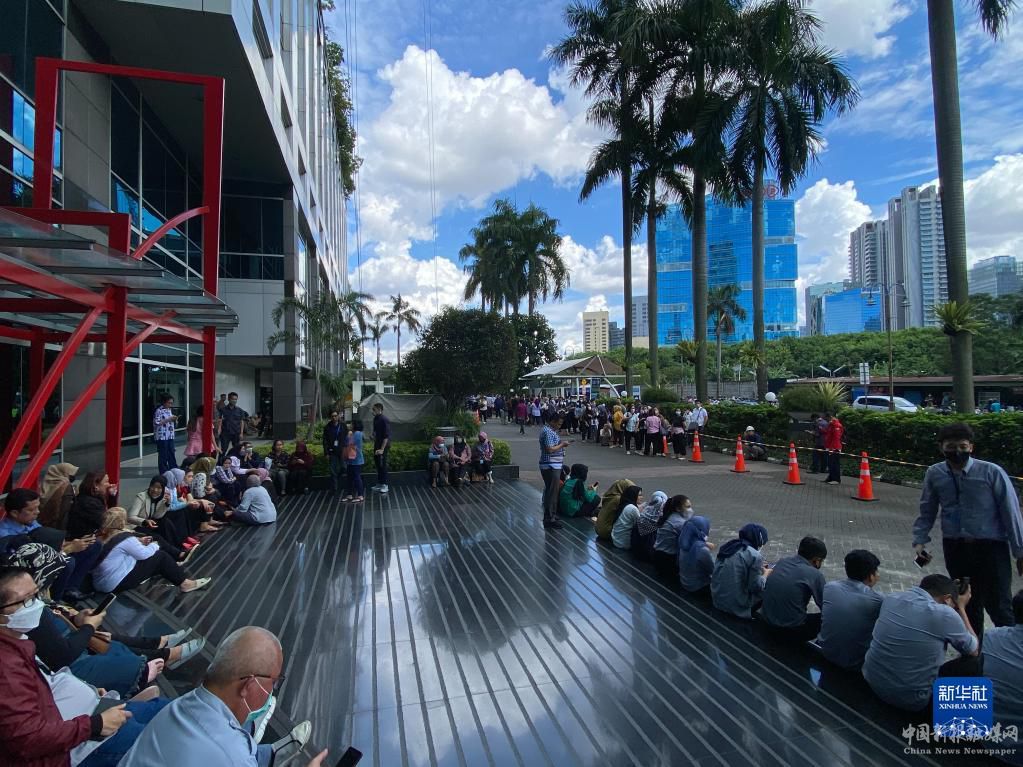 11月21日,在印度尼西亞雅加達(dá),人們?cè)趹敉忾_(kāi)闊地帶避險(xiǎn)。新華社發(fā)(維里攝)