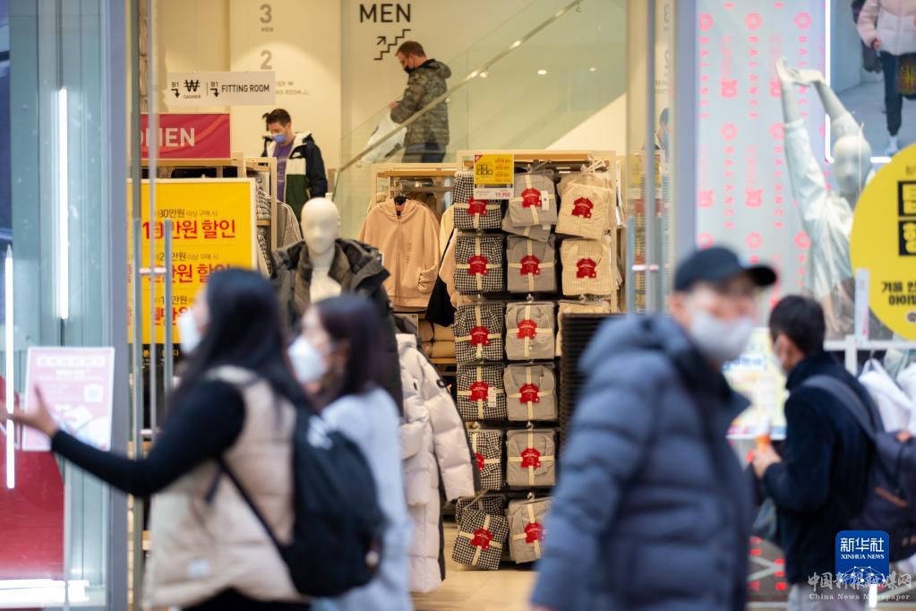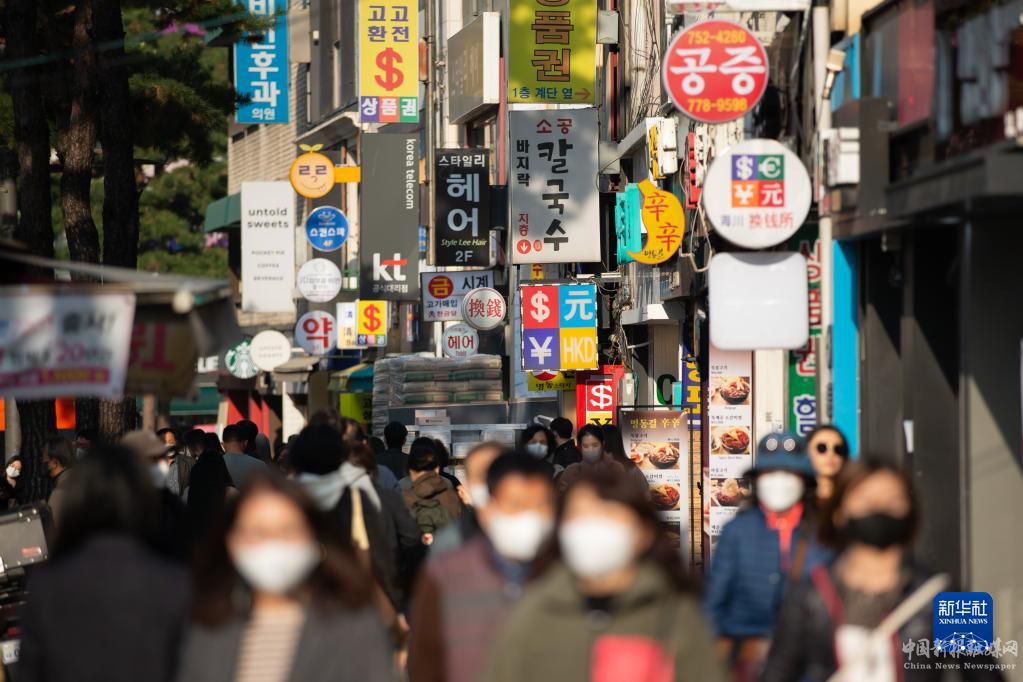 11月24日,人們在韓國首爾明洞商業(yè)街購物。新華社記者 王益亮 攝