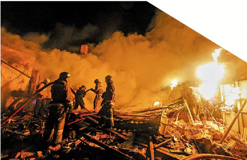 圖:烏克蘭東部頓涅茨克地區(qū)遭轟炸,消防員9日救火。\路透社