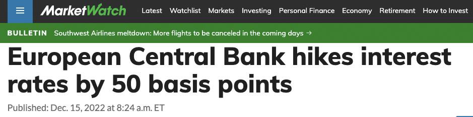 財(cái)經(jīng)網(wǎng)站“市場觀察”報(bào)道:就在本月美聯(lián)儲宣布第七次加息后,歐洲央行宣布再加息50個基點(diǎn),并表示將繼續(xù)大幅加息。