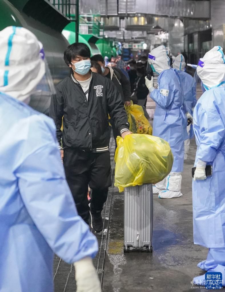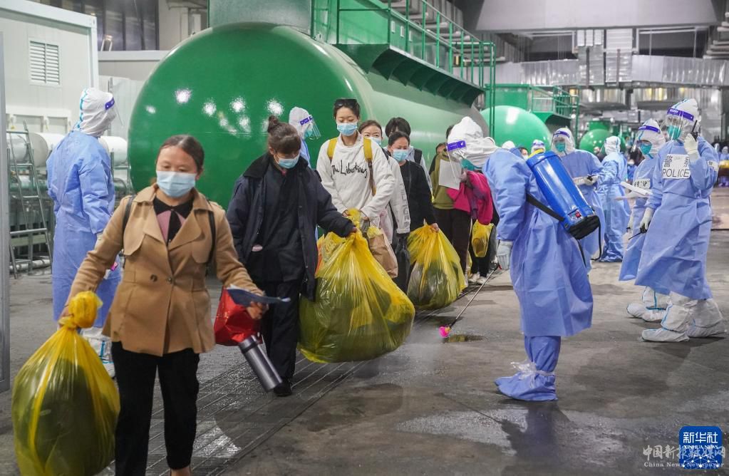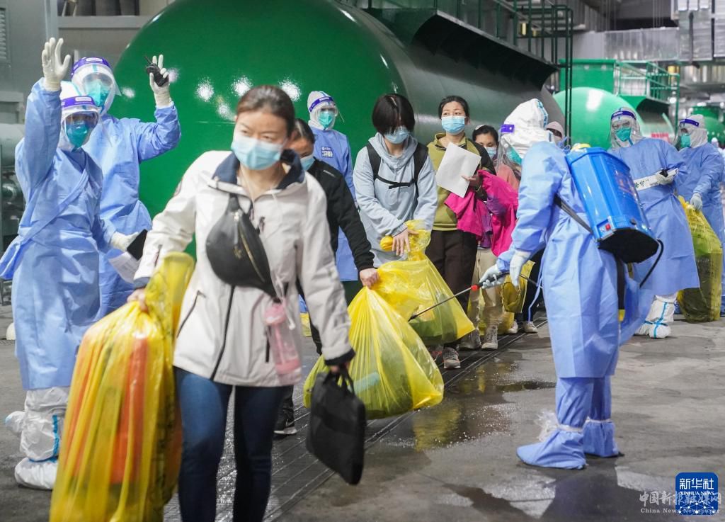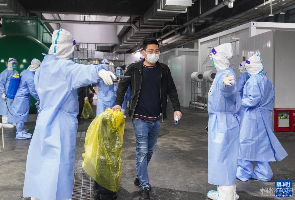 4月14日,在國(guó)家會(huì)展中心(上海)方艙醫(yī)院,首批患者出艙。新華社記者 丁汀 攝