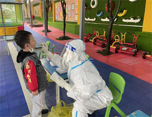 4月13日,湖南省汝城縣第二人民醫(yī)院醫(yī)護人員深入小杜鵑幼兒園開展核酸采集工作,全力保障師生安全健康。