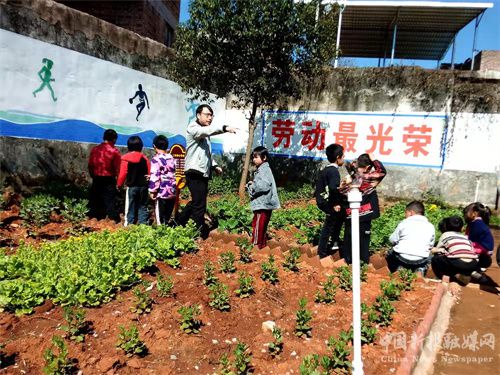 鄭雄平老師在學(xué)校學(xué)農(nóng)基地上勞動(dòng)課