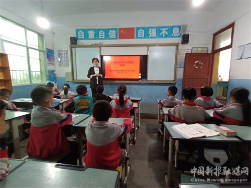 近日,記者走進(jìn)該校,發(fā)現(xiàn)這所村級(jí)小學(xué)亮點(diǎn)紛呈。3月14日,星期一下午第三節(jié)課,全校六個(gè)班的班主任老師開始忙起來了。只見他們拿著教學(xué)資料,信心滿滿的走進(jìn)了各自的班級(jí),檢查預(yù)習(xí)情況、出示PPT,準(zhǔn)備非常充分,開始了一場(chǎng)別開生面的“社會(huì)主義核心價(jià)值觀”之“富強(qiáng)”的主題班會(huì)。