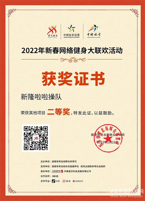 為檢驗(yàn)“雙減”成果,該校積極組織引導(dǎo)啦啦操隊(duì)伍參加各項(xiàng)健身活動(dòng),先后獲得教育部和體育總局頒發(fā)的“全國(guó)校園大課間啦啦操推廣實(shí)施單位”、2022年,獲得國(guó)家體育總局群眾體育司“2022新春網(wǎng)絡(luò)健身大聯(lián)歡活動(dòng)”二等獎(jiǎng)。