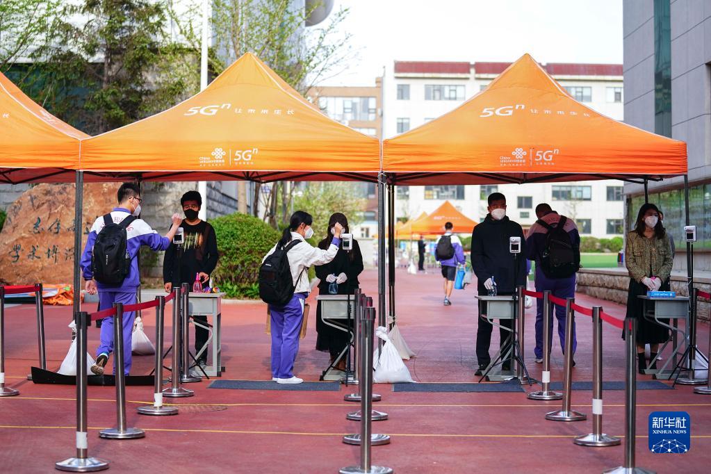 5月5日,東北師范大學(xué)附屬中學(xué)高三年級(jí)的學(xué)生測(cè)量體溫后進(jìn)入校園。當(dāng)日,長(zhǎng)春市高三年級(jí)復(fù)學(xué)復(fù)課,學(xué)生重返課堂。新華社記者 許暢 攝