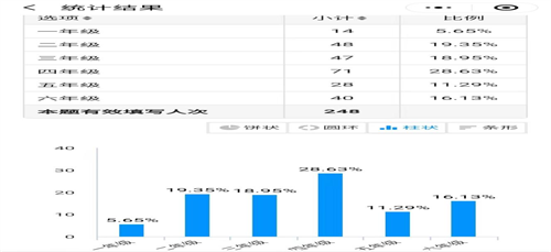 今年五月,學(xué)校圍繞禁毒基礎(chǔ)知識(shí)、禁毒工作等在全校師生家長(zhǎng)間開展禁毒知識(shí)知多少調(diào)查問卷活動(dòng)。此次問卷有效填寫248人次,學(xué)校全體師生員工和大部分家長(zhǎng)通過在線填報(bào)方式參加了本次活動(dòng)。此次活動(dòng),為家校聯(lián)誼拓寬了視野,讓全體師生家長(zhǎng)深刻了解到更多的禁毒知識(shí),為學(xué)校禁毒工作掌握第一手資料,為今后更好地開展禁毒教育工作提供重要依據(jù)。