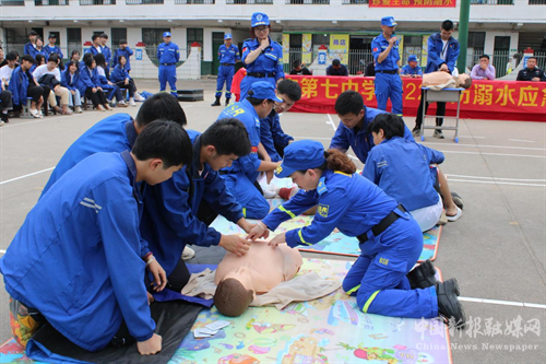 邵東市第七中學(xué)校開展防溺水應(yīng)急救援演練