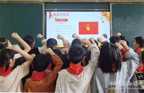 接著,在學校少先隊活動室里,該校吸收了一年級的新隊員,表彰了優(yōu)秀的少先隊員,宣布了大隊部組織機構(gòu)和名單,對所有隊員進行了佩戴紅領(lǐng)巾和行隊禮的專項訓練,完整地舉行了大隊活動程序,新、老隊員們一起進行入隊誓詞的宣誓活動,增強了少先隊組織的凝聚力。