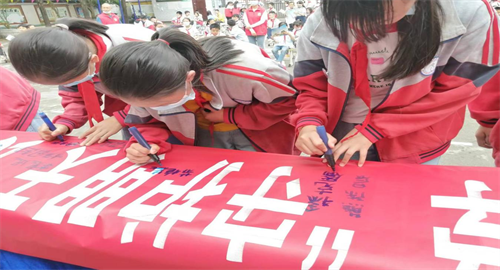 為凝聚力量,砥礪青春,實(shí)現(xiàn)“小手拉大手,禁毒跟我走”的目標(biāo),活動(dòng)當(dāng)天,校長余盛亮代表學(xué)校作了“珍愛生命 遠(yuǎn)離毒品”為主題的國旗下講話,號(hào)召大家積極行動(dòng)起來,自覺抵御毒品。接著,大隊(duì)輔導(dǎo)員鐘先微帶領(lǐng)全校師生,為維護(hù)禁毒、捍衛(wèi)禁毒在國旗下再宣誓,在禁毒橫幅上鄭重簽名,從思想上進(jìn)行再教育,進(jìn)一步提高了全體師生對(duì)毒品的認(rèn)識(shí),以及自覺抵制毒品的信心和決心。