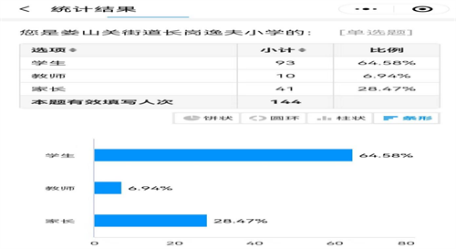 禁毒你我他,知識(shí)進(jìn)萬家。為讓全校師生了解和掌握更多的禁毒知識(shí),自覺抵御毒品,從行動(dòng)上再出發(fā),在國際禁毒日來臨之際,學(xué)校充分利用自媒體資源,以在線答題的方式對(duì)全校師生舉行了禁毒知識(shí)答題競(jìng)賽,同時(shí)還邀請(qǐng)學(xué)生家長參加,把毒品預(yù)防教育工作引向縱深開展。本次在線競(jìng)賽活動(dòng)僅用一天時(shí)間,有效答題人數(shù)為144人,其中教師10人,學(xué)生93人,家長41人。此次活動(dòng)的開展,為學(xué)校禁毒宣教工作獲得第一手資料,為今后更好地開展毒品預(yù)防教育工作指明了方向,為陽光校園、無毒社區(qū)的創(chuàng)建埋下伏筆。