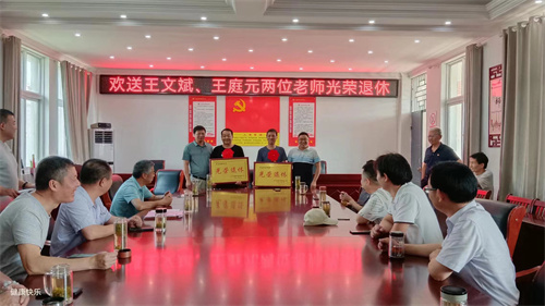 憶如歌往事,話難舍情懷。為進(jìn)一步營造尊師重教良好氛圍,增強(qiáng)退休教師獲得感、榮譽(yù)感和幸福感,7月1日上午,安徽省廬江縣郭河鎮(zhèn)明德小學(xué)舉行了王文斌和王庭元兩位退休教師歡送會,該校班子成員和部分教師代表參加了活動。