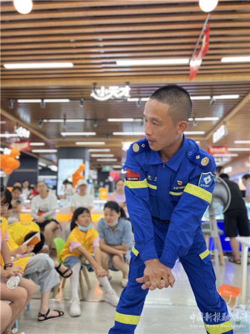活動現(xiàn)場,長沙縣藍(lán)天救援隊陳槐老師通過現(xiàn)場講解、互動問答等形式,給在場的20名中小學(xué)生詳細(xì)介紹了“十大溺水時的癥狀”、游泳的注意事項“三不游二不做”,及防范自救措施,如何規(guī)避溺水事故的發(fā)生等。緊接著,陳老師還在現(xiàn)場演示了心肺復(fù)蘇、人工呼吸、包扎傷口的方法,并指導(dǎo)孩子們親自參與體驗?zāi)缢本鹊倪^程。同學(xué)們積極配合,現(xiàn)場氣氛非?;钴S。