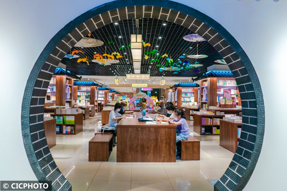 ↑2022年8月28日,重慶市渝中區(qū)新華書店內(nèi),家長帶著孩子們選購課外讀物和輔導(dǎo)教材,為新學(xué)期做準(zhǔn)備。CICPHOTO/李洪波 攝