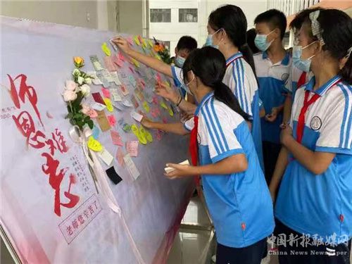 “教誨如春風(fēng),師恩似海深。桃李不言,下自成蹊。”“老師,我衷心地祝福您教師節(jié)快樂(lè)!愿您永遠(yuǎn)年輕幸福!”在第38個(gè)教師節(jié)來(lái)臨之際,湖北省荊門市掇刀區(qū)麻城中學(xué)學(xué)生紛紛向教師送上一句句暖心的祝福語(yǔ),表達(dá)對(duì)教師的感激之情。
