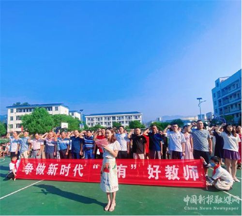 “忠誠黨的教育事業(yè),遵守教育法律法規(guī),履行教書育人職責,引領學生健康成長,做黨和人民的四有好教師:有理想信念、有道德情操、有扎實學識、有仁愛之心,為教育發(fā)展、國家繁榮、民族振興勤奮努力。”60余名教師在國旗下緊握右拳,莊嚴宣誓。