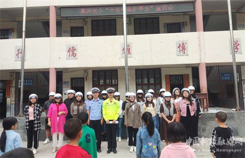 宣講后,警官為該校教師講解如何正確使用佩戴安全頭盔并發(fā)放安全頭盔,為上下班途中保駕護航。