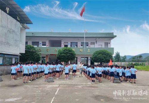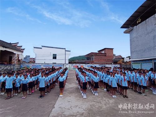 9月26日,星期一早上,湖南省郴州市宜章縣黃沙鎮(zhèn)上章鑾村小學(xué)正舉行升國旗儀式,五星紅旗冉冉升起……272名學(xué)生統(tǒng)一著裝,整齊列隊(duì)行注目禮。