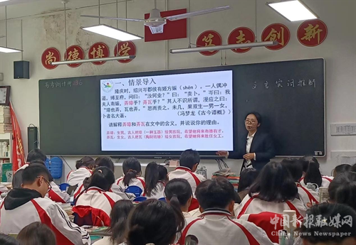 341班語文老師劉成蘭的《實(shí)詞推義》課,運(yùn)用了典故和大量真題例句引導(dǎo)學(xué)生在“發(fā)現(xiàn)——歸納——演練”中掌握文言實(shí)詞的推斷方法,以學(xué)生為主體,突出學(xué)法指導(dǎo)。整堂課如行云流水,學(xué)生在老師的引導(dǎo)下探究、思考、實(shí)踐、歸納,收獲滿滿,回味無窮。