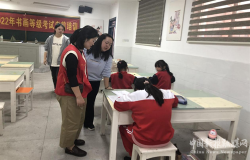 會后,市實驗中學副校級督學瞿新華和美術老師何湘娟對蒸水小學的書法美術課后輔導班的孩子進行了悉心指導。瞿督學在黑板上邊示范邊講述,指導學生細心觀察,體會漢字的造型美。然后巡回指導,提醒學生每一筆的位置和運筆方法,對部分學生甚至手把手教。