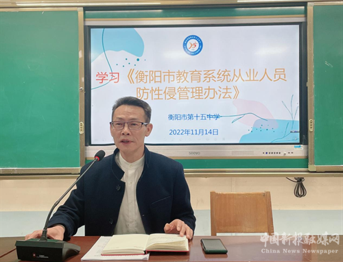 為加強(qiáng)師德師風(fēng)建設(shè),提升全體教職員工知法守法意識(shí),預(yù)防校園性侵事件發(fā)生,守護(hù)學(xué)生健康成長,進(jìn)一步做好未成年保護(hù)工作。11月14日,衡陽市第十五中學(xué)組織開展2022年師德師風(fēng)培訓(xùn)暨“防性侵”教育活動(dòng)。