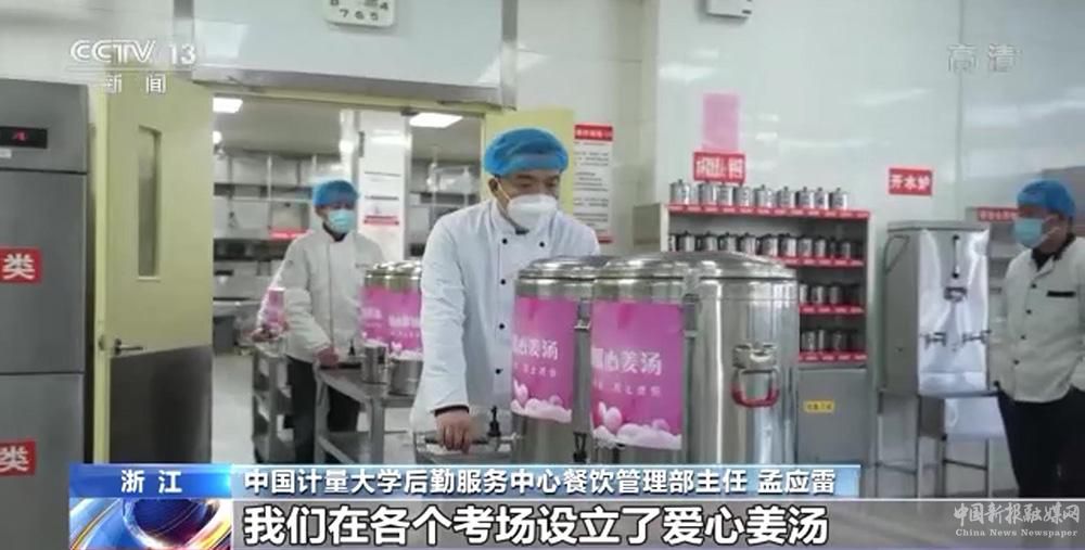 中國(guó)計(jì)量大學(xué)后勤服務(wù)中心餐飲管理部主任 孟應(yīng)雷:我們嚴(yán)把原材料的驗(yàn)收關(guān),全程監(jiān)督食材制作過(guò)程,確保食材既安全衛(wèi)生,又營(yíng)養(yǎng)美味。我們?cè)诟鱾€(gè)考場(chǎng)設(shè)立了愛(ài)心姜湯,確保第一時(shí)間將熱騰騰的免費(fèi)愛(ài)心餐送到每一名考研學(xué)子的手上。