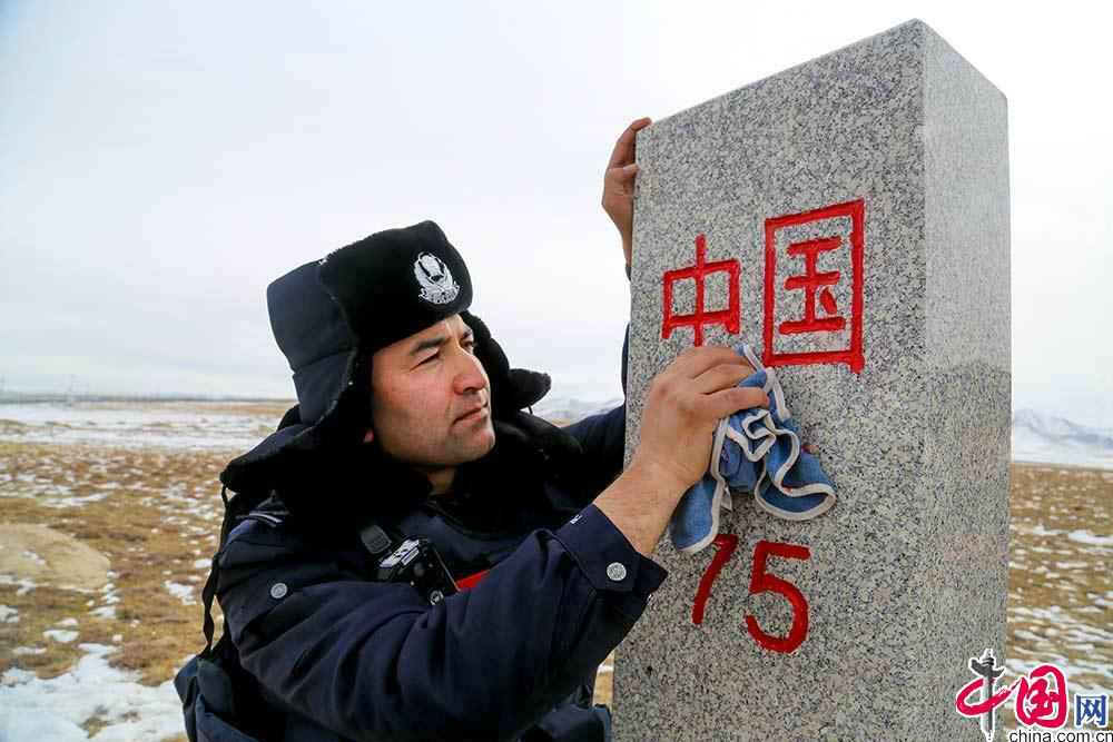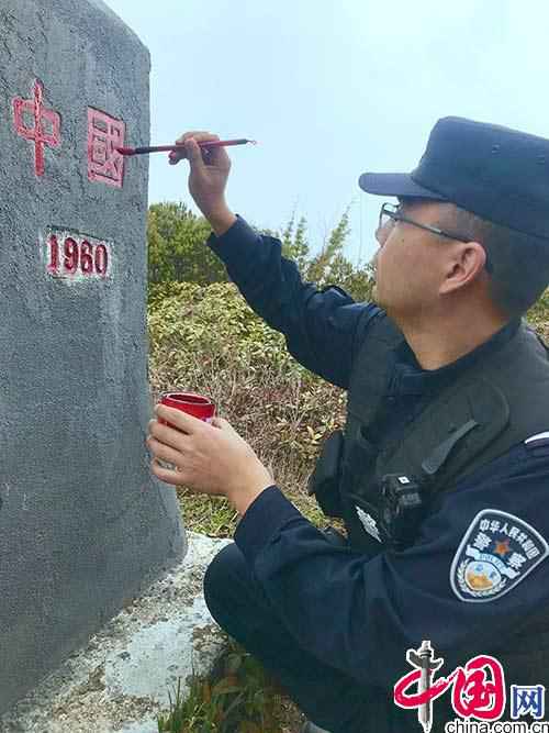 新疆塔克什肯出入境邊防檢查站為中蒙123界碑描紅。