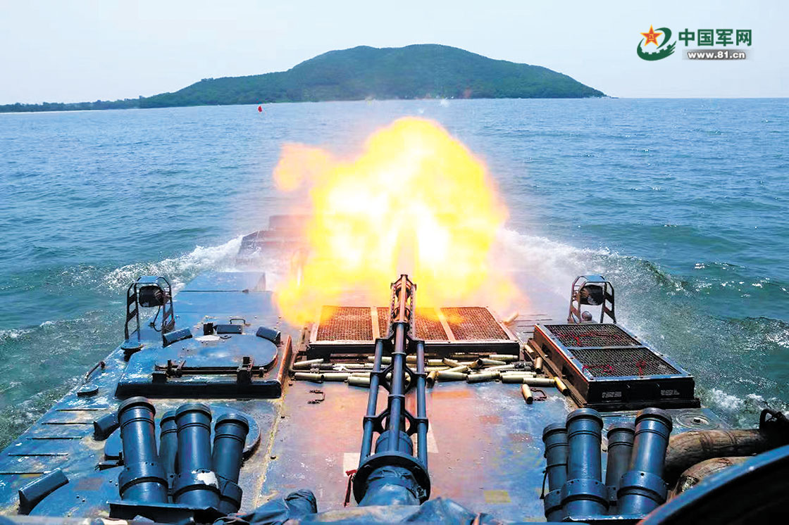 海軍陸戰(zhàn)隊(duì)某旅組織跨晝夜海上實(shí)彈射擊訓(xùn)練,一批新馭手、新射手在復(fù)雜海域經(jīng)受考驗(yàn)。圖為步戰(zhàn)車對(duì)岸上目標(biāo)進(jìn)行射擊。簡(jiǎn)貴洋攝