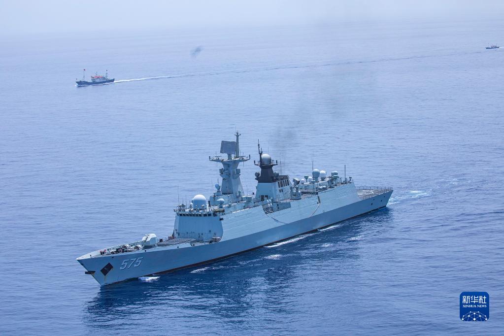 中國(guó)海軍第40批護(hù)航編隊(duì)中的岳陽(yáng)艦在執(zhí)行護(hù)航任務(wù)(6月4日攝)。新華社發(fā)(楊捷 攝)