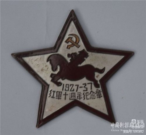 接著,朱桂勤又向記者展示了保存的1978年步兵第108團(tuán)即原紅軍總部特務(wù)團(tuán)、朱德警衛(wèi)團(tuán),建團(tuán)43周年大會(huì)全體代表合影。 隨后又拿一枚“1927一37紅軍十周年紀(jì)念章”向記者展示。