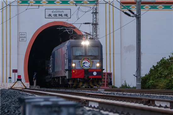 我軍赴老撾?yún)⒓?ldquo;和平列車-2022”活動(dòng)的衛(wèi)生列車19日上午從磨憨站駛出,通過“一隧連兩國(guó)”的友誼隧道后抵達(dá)老撾。這是中老鐵路開通以來,首次組織衛(wèi)生列車跨境投送。