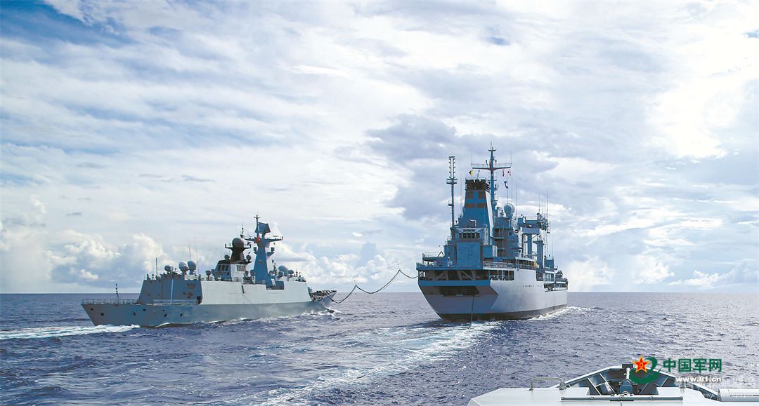 南部戰(zhàn)區(qū)海軍某護衛(wèi)艦支隊與兄弟部隊在南海某海域開展艦艇協(xié)同演練。李正嵩 攝