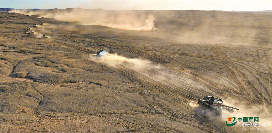 第71集團軍某合成旅在西北戈壁某訓(xùn)練場進行快速機動訓(xùn)練。王文洲 攝