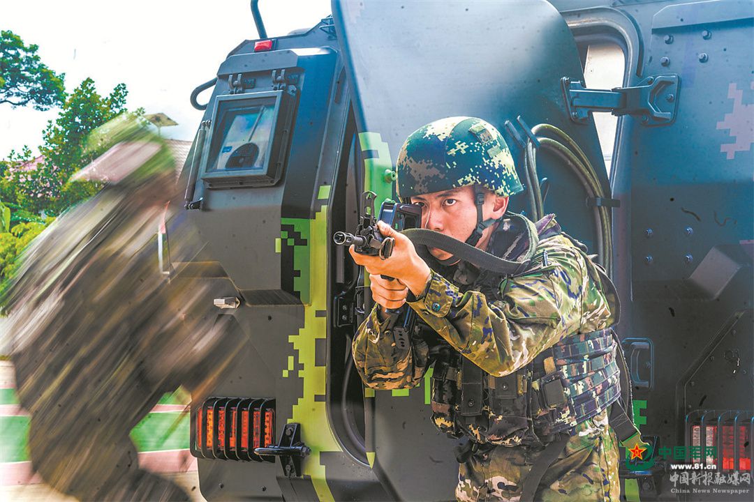 戰(zhàn)略支援部隊某大隊官兵參加應(yīng)急處突訓(xùn)練。白文智 攝