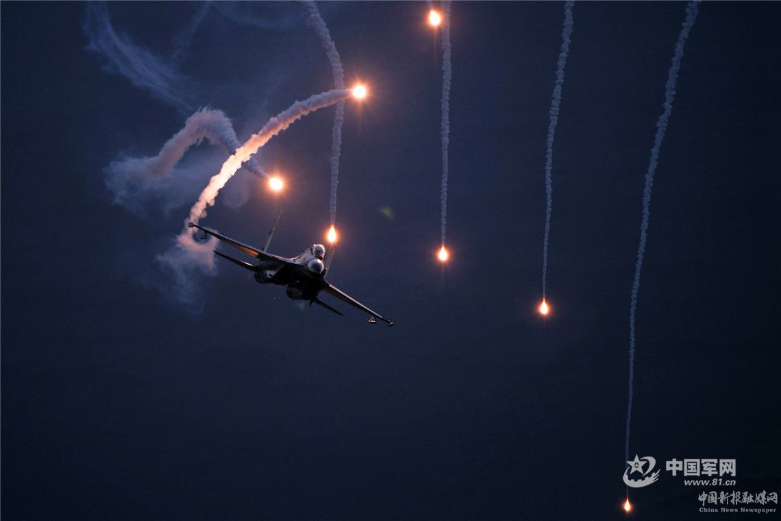 殲-11戰(zhàn)機(jī)釋放干擾彈。余紅春 攝