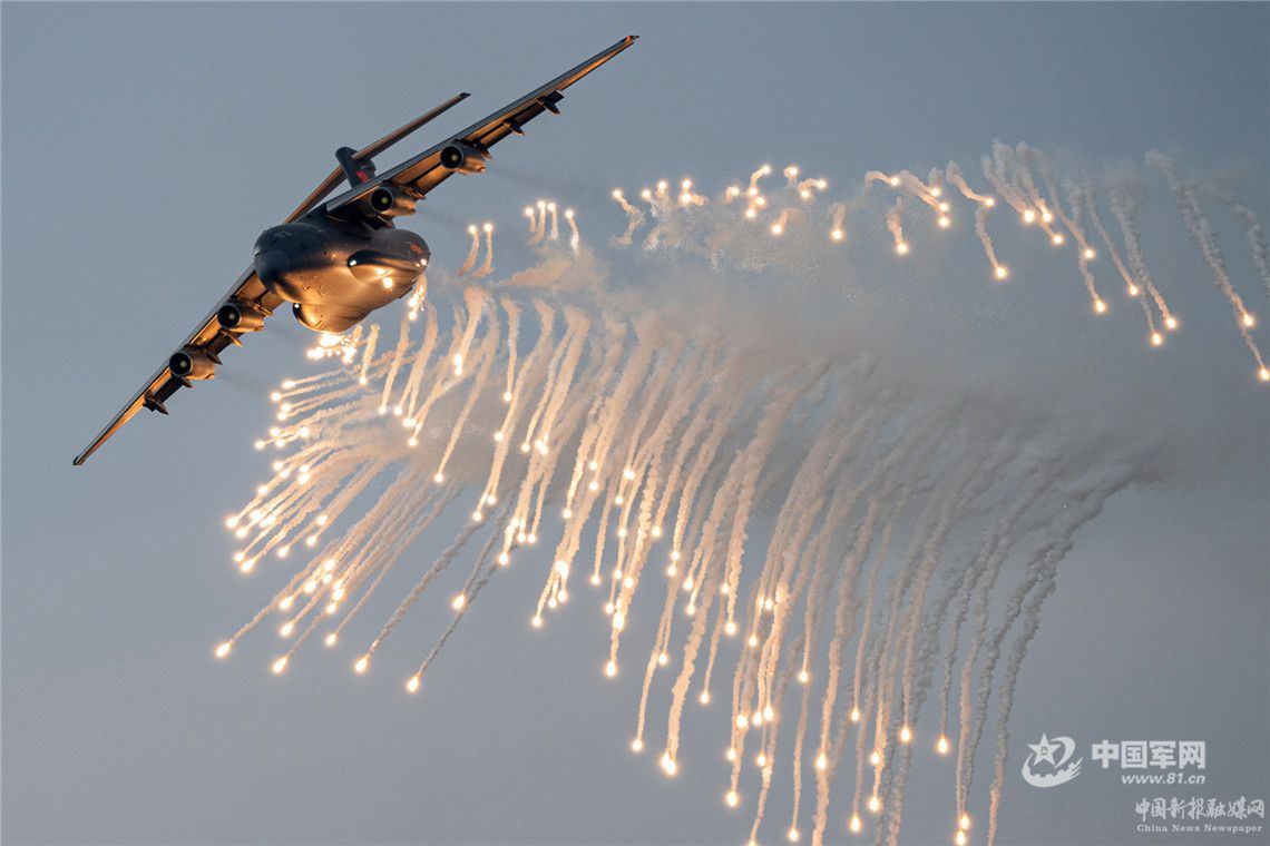運(yùn)-20飛機(jī)進(jìn)行釋放干擾彈訓(xùn)練。劉川 攝