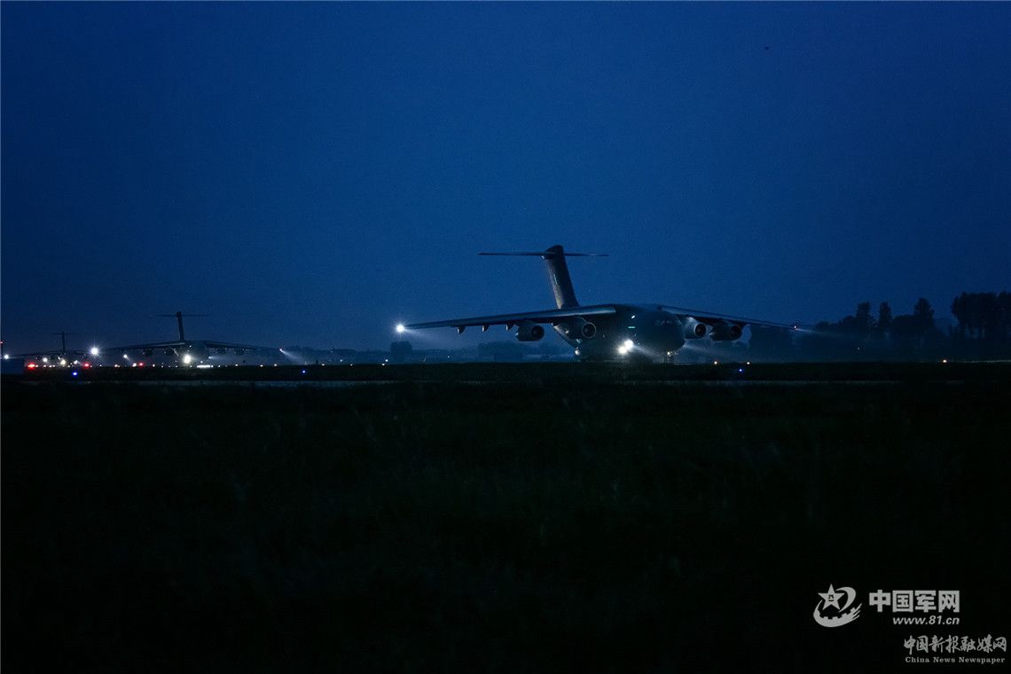 運(yùn)-20飛機(jī)夜間訓(xùn)練。劉川 攝