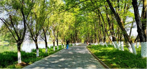 春光融融,休寧縣橫江國家濕地公園里生機盎然,綠樹成蔭,吸引了市民前來休閑觀光、鍛煉身體。