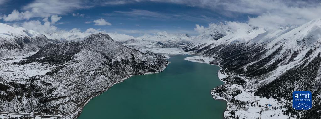 這是無人機拍攝的然烏湖(4月18日攝)。